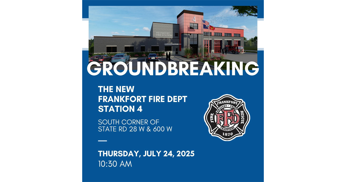 FRANKFORT, Ind. (July 15, 2025) – The City of Frankfort Fire Department is set to host a groundbreaking ceremony for its new Fire Station 4, a significant project aimed at enhancing public safety and emergency response capabilities for the Frankfort community. The event is scheduled for Thursday, July 24, 2025, at 10:30 AM, and will take place at the south corner of State Road 28 W & 600 W. The announcement was made at the City’s Board on Public Monday evening.