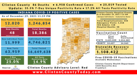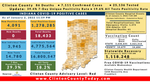 Update (1/7/22): 86 Additional Clinton County Residents Tested Positive For COVID-19 As Reported By The ISDH