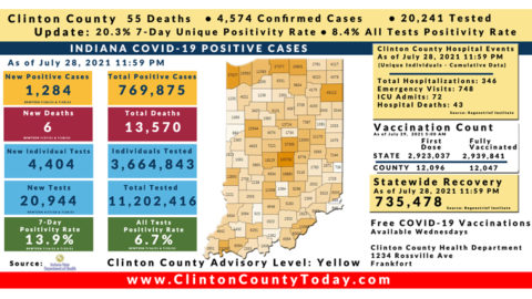 Update (8/6/21): 28 New Clinton County Residents Tested Positive For COVID-19 As Reported By The ISDH
