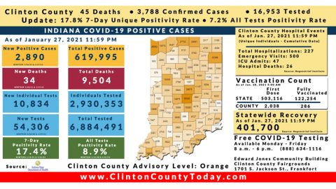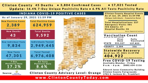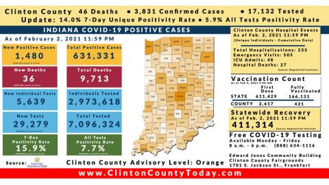 Update (2/5/21): 1 Death and 7 New Clinton County Residents Tested Positive For COVID-19 As Reported By The ISDH
