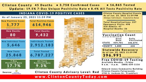 Update (1/27/21): 9 New Clinton County Residents Tested Positive For COVID-19 As Reported By The ISDH