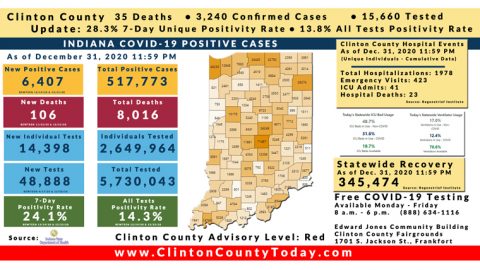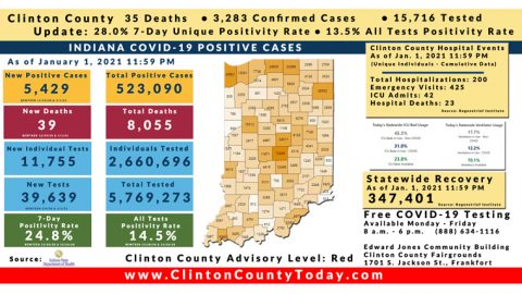 Update (1/8/21): 1 Death and 22 New Clinton County Residents Tested Positive For COVID-19 As Reported By The ISDH