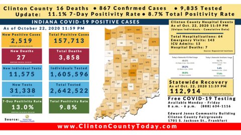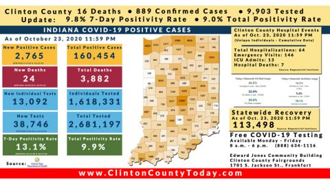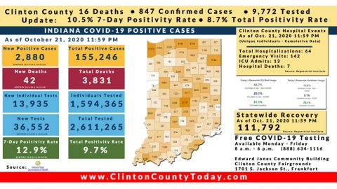 Update (10/25/20): 14 New Clinton County Residents Tested Positive For COVID-19 As Reported By The ISDH
