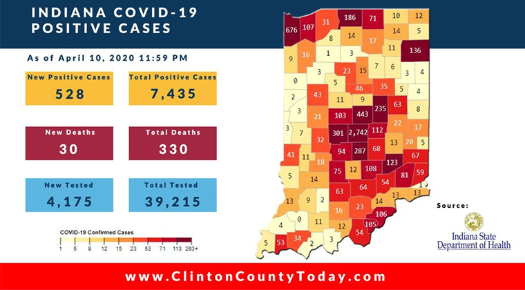528 New Positive Cases Of COVID-19 Makes It 7,435 Hoosiers Now Diagnosed, 330 Deaths