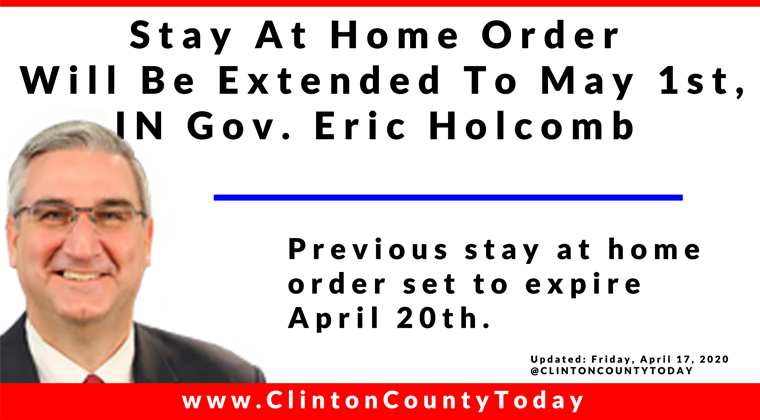 During the Friday, April 17, 2020, COVID-19 press conference at the Indiana Statehouse, Indiana Governor Eric Holcomb announced the current stay at home order set to expire April 20, 2020, will be extended to Friday, May 1, 2020.